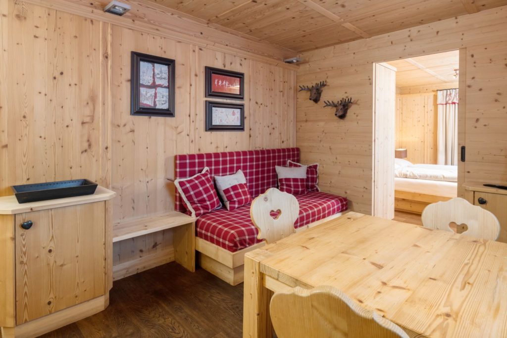 Tutto è rivestito in legno di cimbro e di abete che profumano di bosco.
